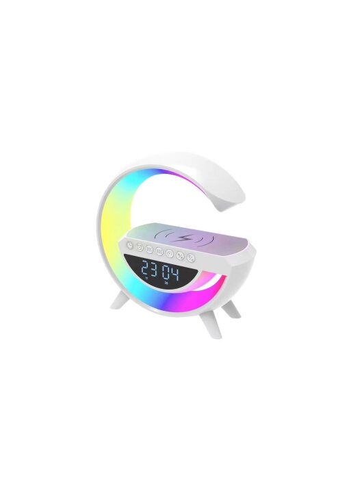 רמקול בלוטוס כולל מטען אלחוטי מהיר לניידים עם רדיו, שעון ותאורת לד