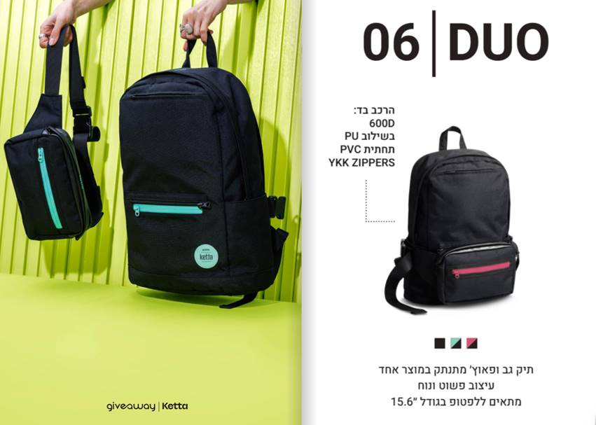תיק גב ללפטופ עם פאוץ' מתנתק במוצר אחד, מתאים ללפטופ בגודל 15.6"