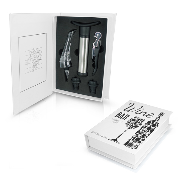 מארז 5 אביזרי יין ארוז במארז ספר יוקרתי הכולל: