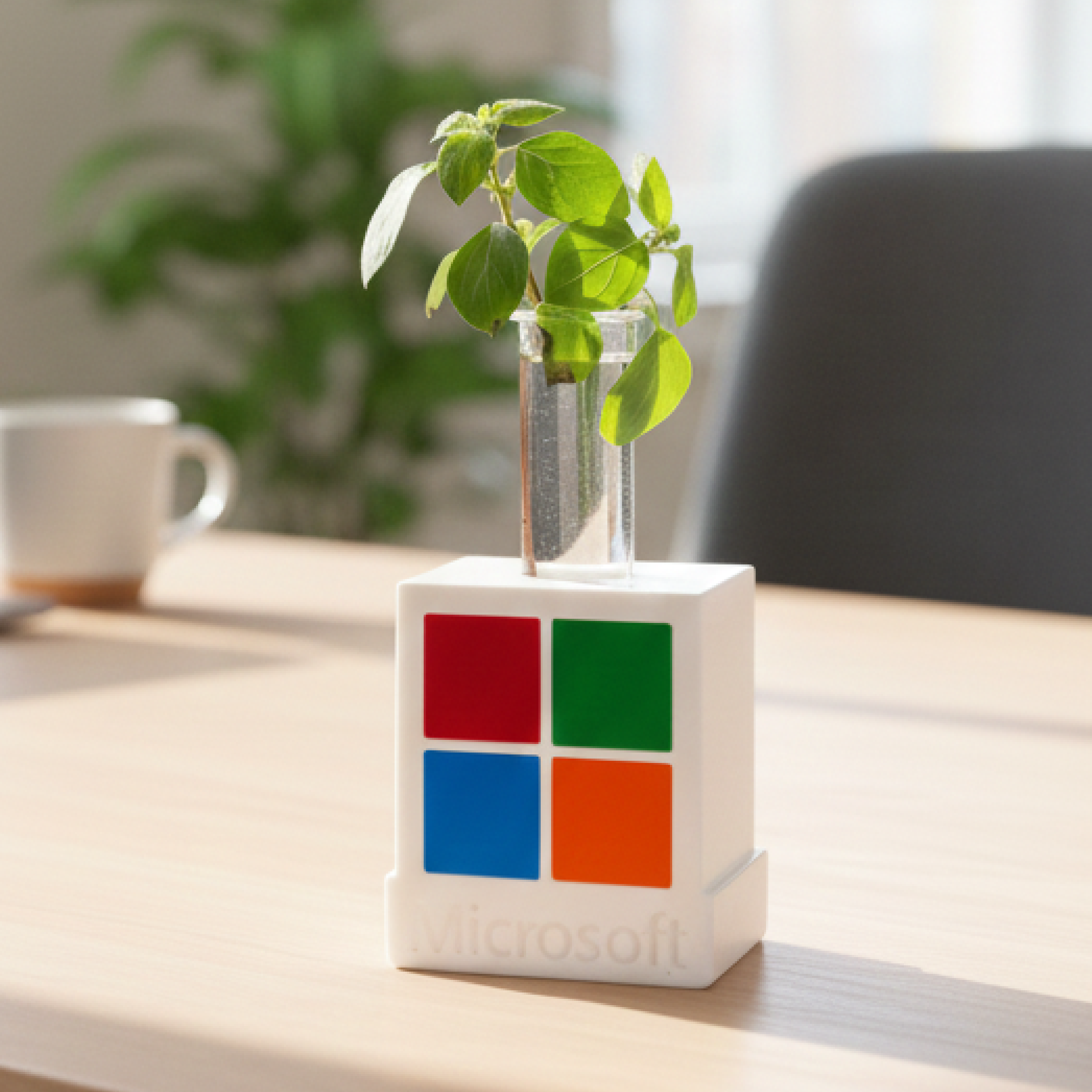 אגרטל ייחור המבוסס על צורת הלוגו עצמו,