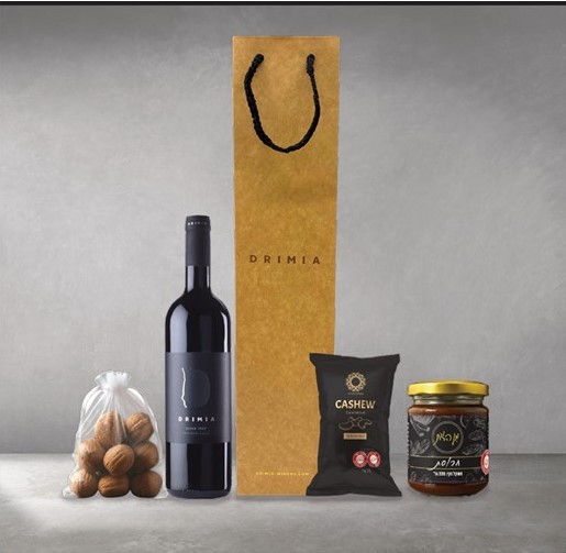 שקית מהודרת מכילה: יין אדום סהר יקב דרימיה 375 מ"ל ,