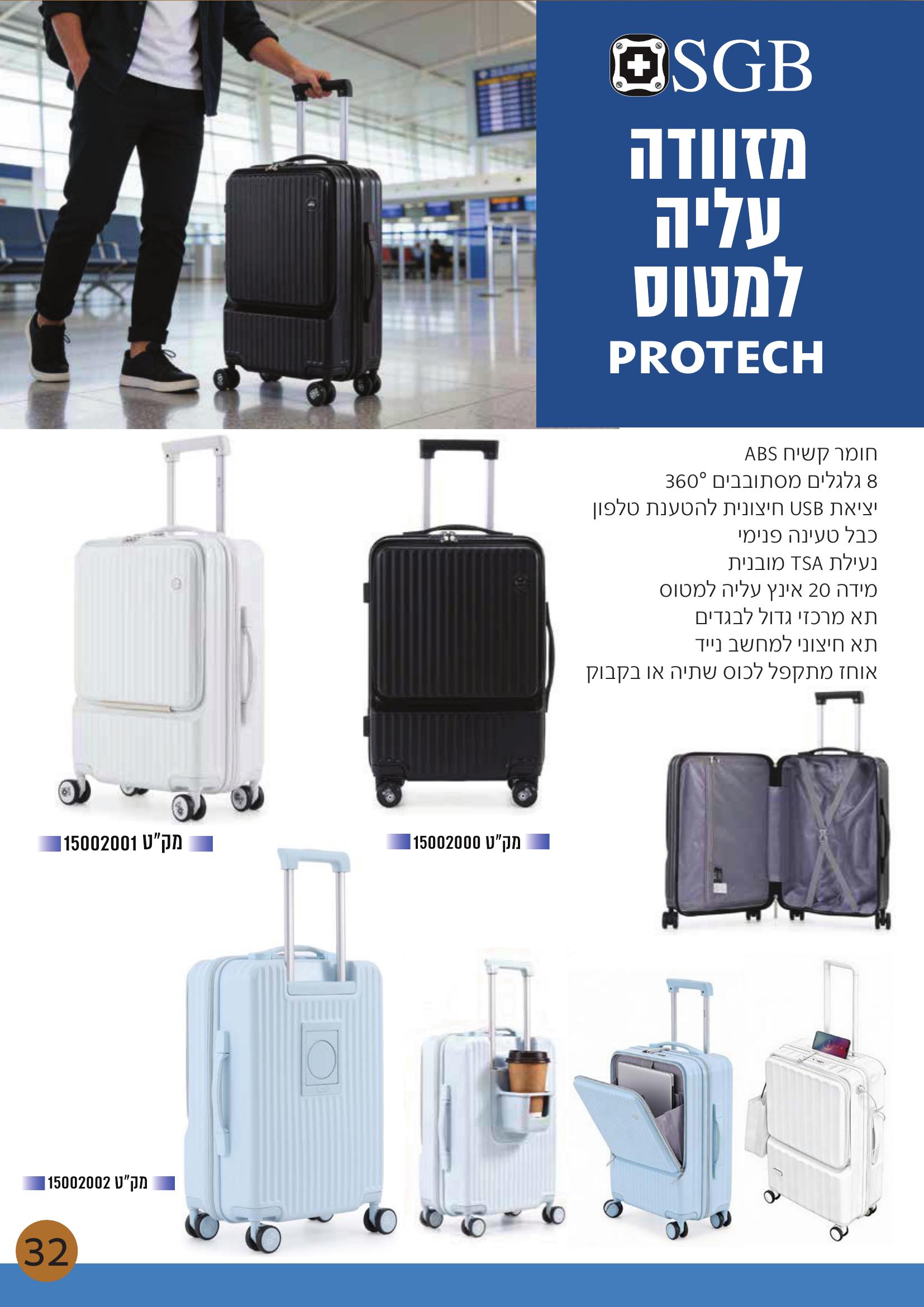 מזוודה עליה למטוס 20 PROTECK , חומר קשיח ABS , גלגלים 8 מסתובבים