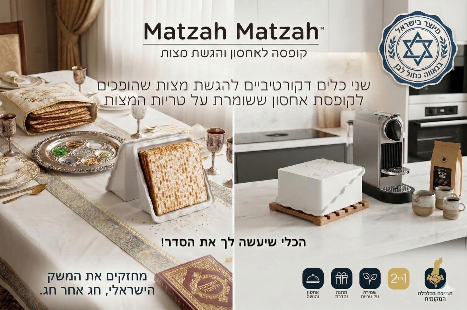 קופסא לאחסון והגשת מצות, מגיע עם חבק ממותג בלוגו שלכם .