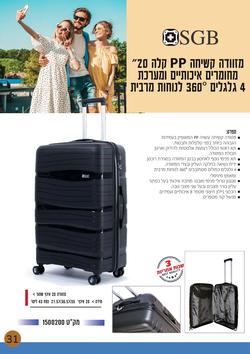 מזוודה קשיחה PP קלה 20" עליה למטוס, 4 גלגלים מחיר מבצע: 119 למינימום 100 י"ח