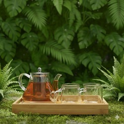 סט תה מעוצב הסט כולל קנקן תה בנפח 1 ליטר מזכוכית מחוסמת בעיצוב מודרני המשלב מ
