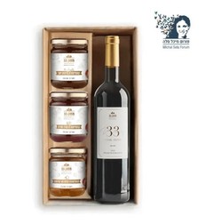 חבילת שי לחגים הכוללת: קברנה סוביניון יין אדום יבש, 750מ"ל, תוצרת משק 33. פי