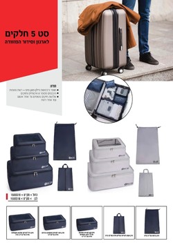 סט 5 תיקים לאירגון וסידור המזוודה חומר ריבסטופ מוגן מים +רשת נושמת רוכסנים מ