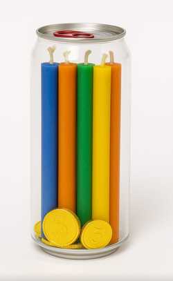 חנוכיה ממתכת מעורב צבעים. מחיר: 10.5 לכמות של 500 י"ח איסוף עצמי