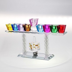 חנוכיה קריסטל 16 סמ צבעונית + סביבון