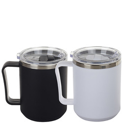 ספל תרמי נירוסטה חם / קר 350 מ"ל ציפוי פלסטי חיצוני עם ידית ומכסה אקרילי שקוף
