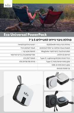 פאוור בנק סוללת ליתיום 10,000 MAH * צג בקרה דיגיטלי וכבלים מובנים מתאמים לניי