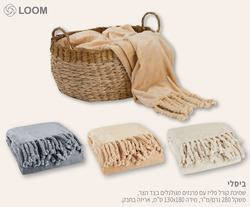 שמיכת מאריג שניל רך עם פרנזים בצד הצר משקל 330 גרם, תחושה נעימה ויוקרת