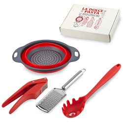 סט מושלם להכנת פסטה: *מסננת סיליקון מתקפלת לאיחסון נוח. *כותש ופורס שום.